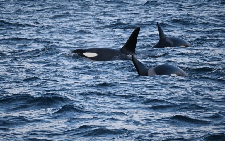 Northern resident killer whales, which rely almost entirely on Chinook salmon, were observed following dolphins that acted like “scouts.” The dolphins chased salmon ahead of them, allowing the whales to catch the fish. In return, the dolphins fed on leftovers when the whales tore the salmon apart at the surface.